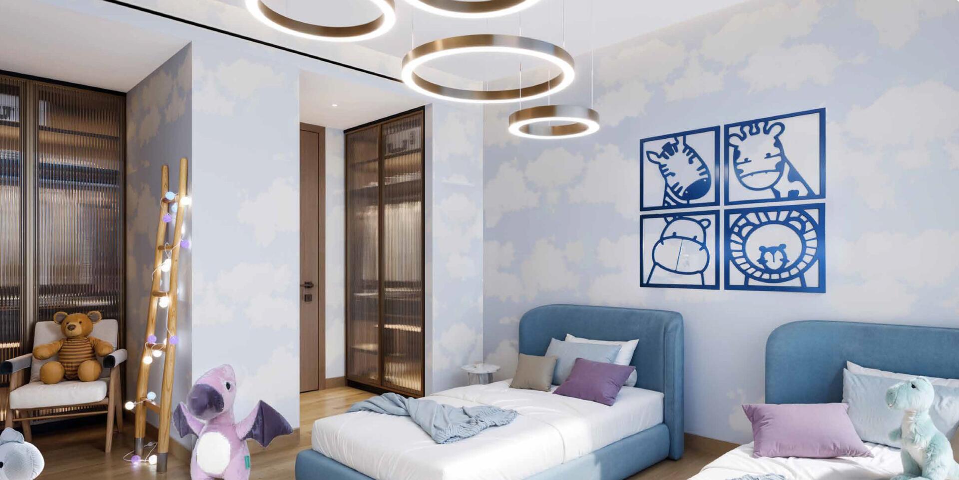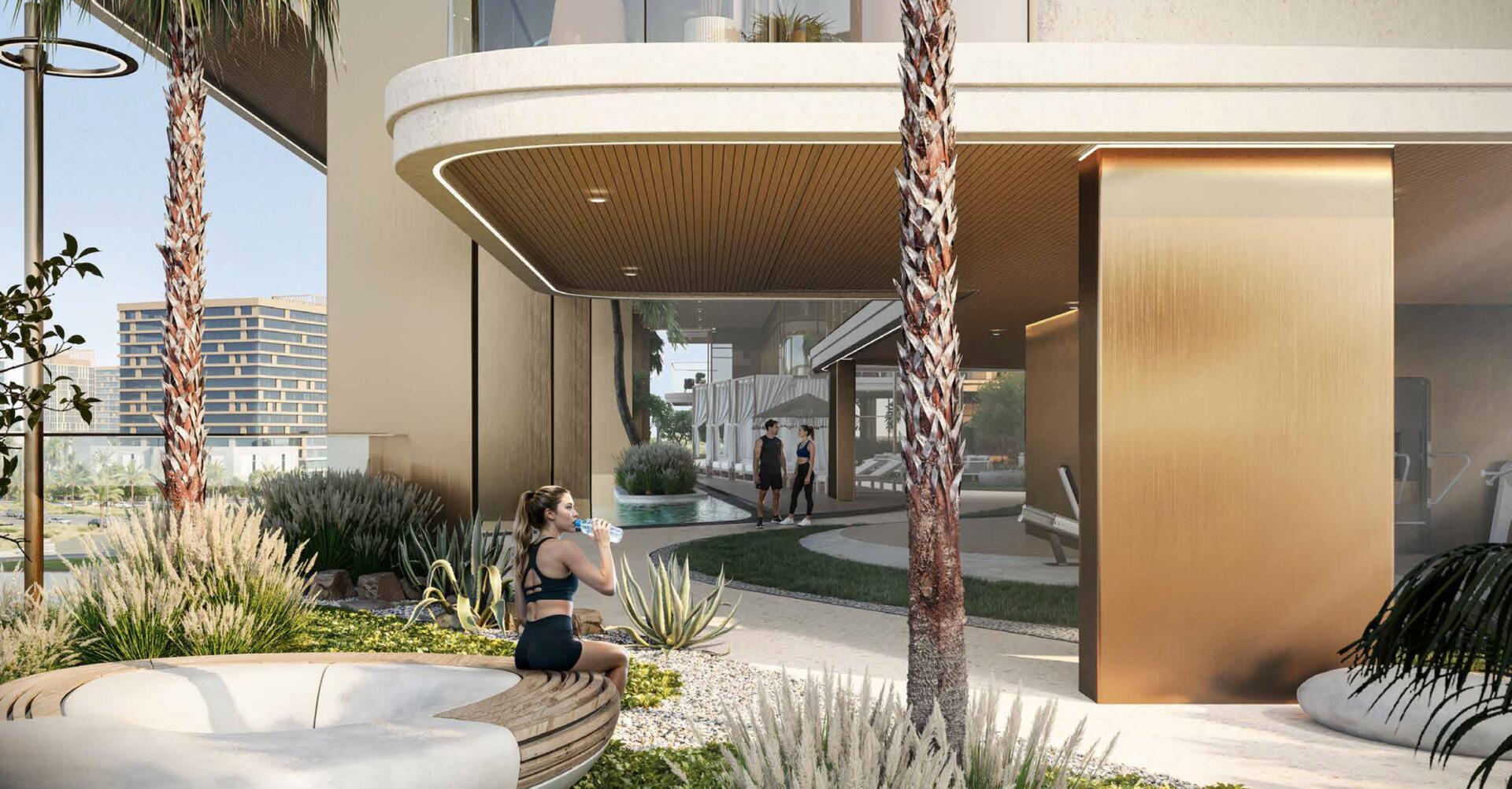 Amenities include an infinity crystal pool, kids pool and splash area, landscaped gardens, outdoor seating zones, and rooftop spaces for yoga and relaxation. Residents also have access to an AI gym, outdoor gym, sauna, steam, and snow rooms, a kids club, playgrounds, a gaming lounge, and concierge services. The location on Dubai Islands provides a coastal lifestyle with direct access to beaches and fast connections to the wider city.