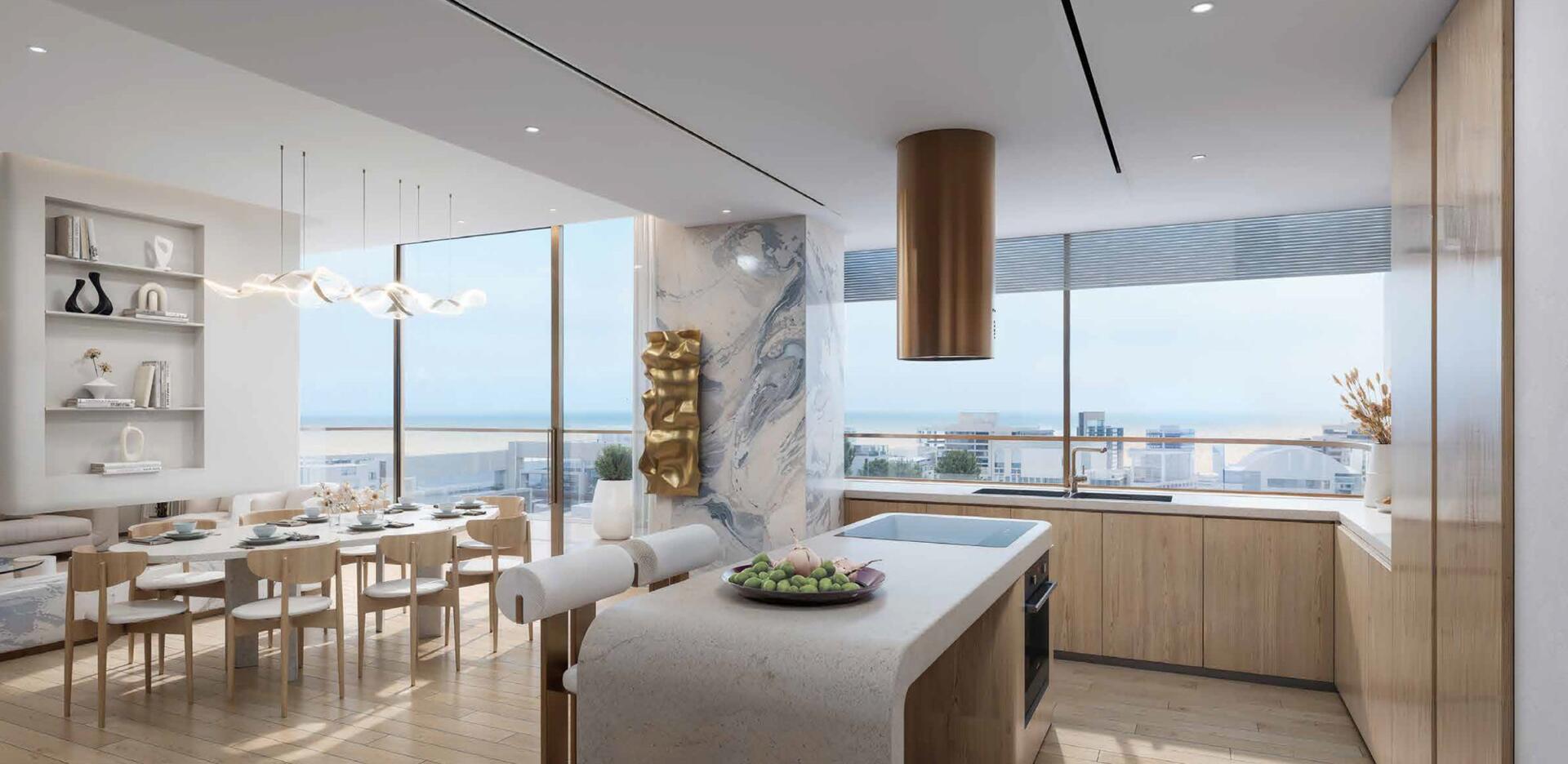 Kaia Residences is a waterfront residential project by Amwaj Development located on Dubai Islands. The architecture follows soft, nature-inspired lines with wide balconies and large glazed surfaces that frame views of the sea and surrounding islands. The project is designed as a calm everyday retreat that blends island living with convenient access to key destinations across Dubai.